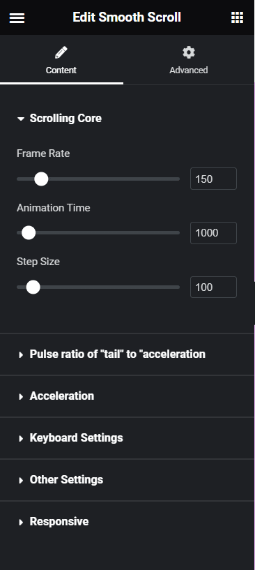 If you want more controllable smooth scrolling effect like you can control how smooth it should be than you can use the Smooth scroll widget by The Plus Addons for Elementor.