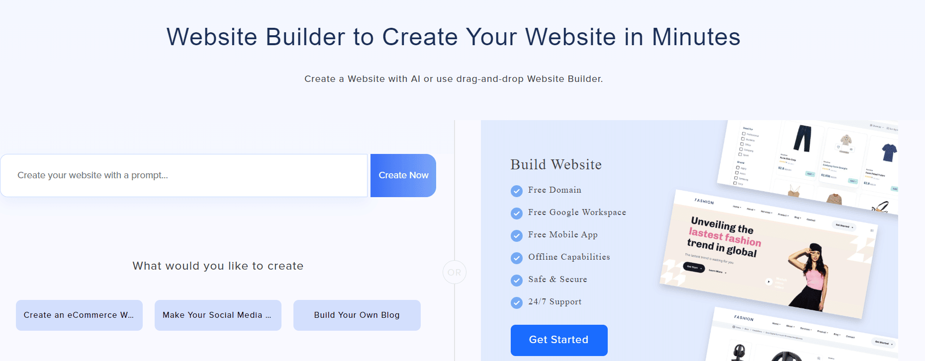 Just describe what kind of website you need and everything else will taken care of by the AI from beautiful and relevant images to content.