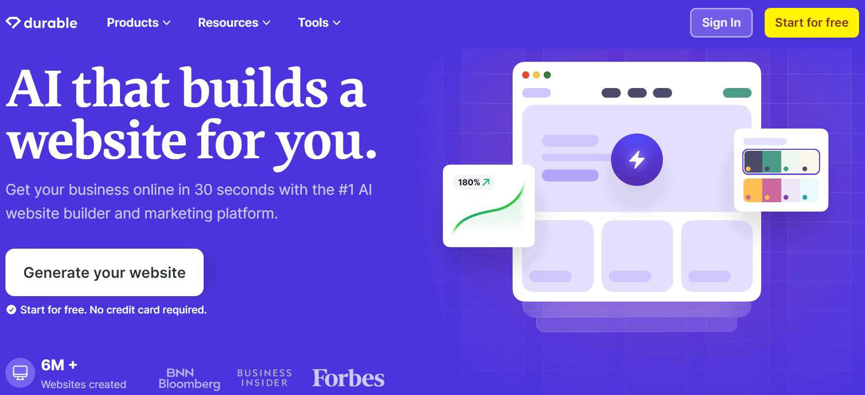 - AI-Powered: Durable.co uses AI technology to create personalized business websites. Their AI algorithms analyze your business information and create a website that suits your needs.