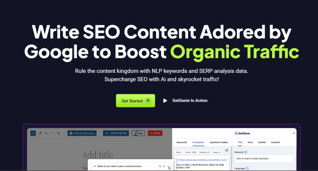 - AI Blog Content: GetGenie is your personal AI assistant for SEO tasks. It checks competitors, finds top keywords, and creates friendly content for search engines within minutes.