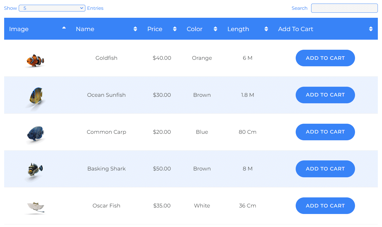 Also, if you want to add images to the table then there is lazy load feature option available for that too for better performance.