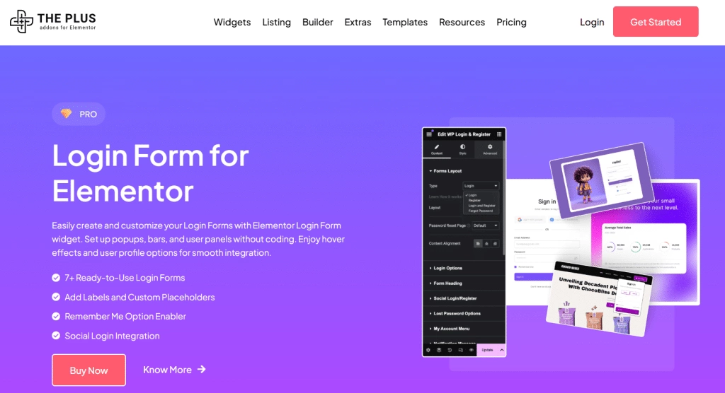 We’d recommend using the Login Form widget by The Plus Addons as it ticks all the boxes mentioned in the previous section.