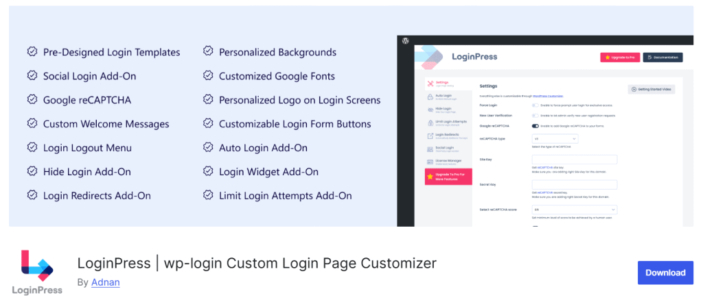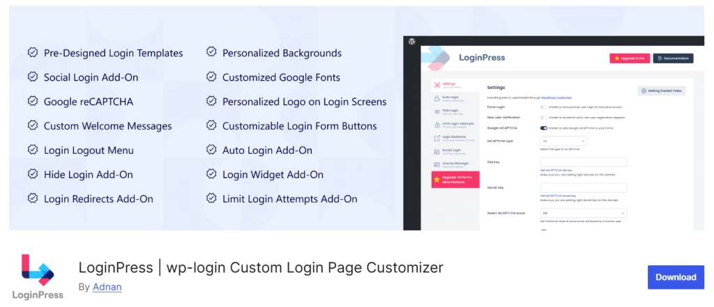 LoginPress offers a free version with basic features. For more advanced tools and social login options, you can upgrade to the premium version starting at around $39 per year.