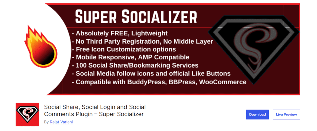 Super Socializer is free to use. You can download it from the WordPress plugin directory without any cost. Additional features or support may require paid plans or addons.