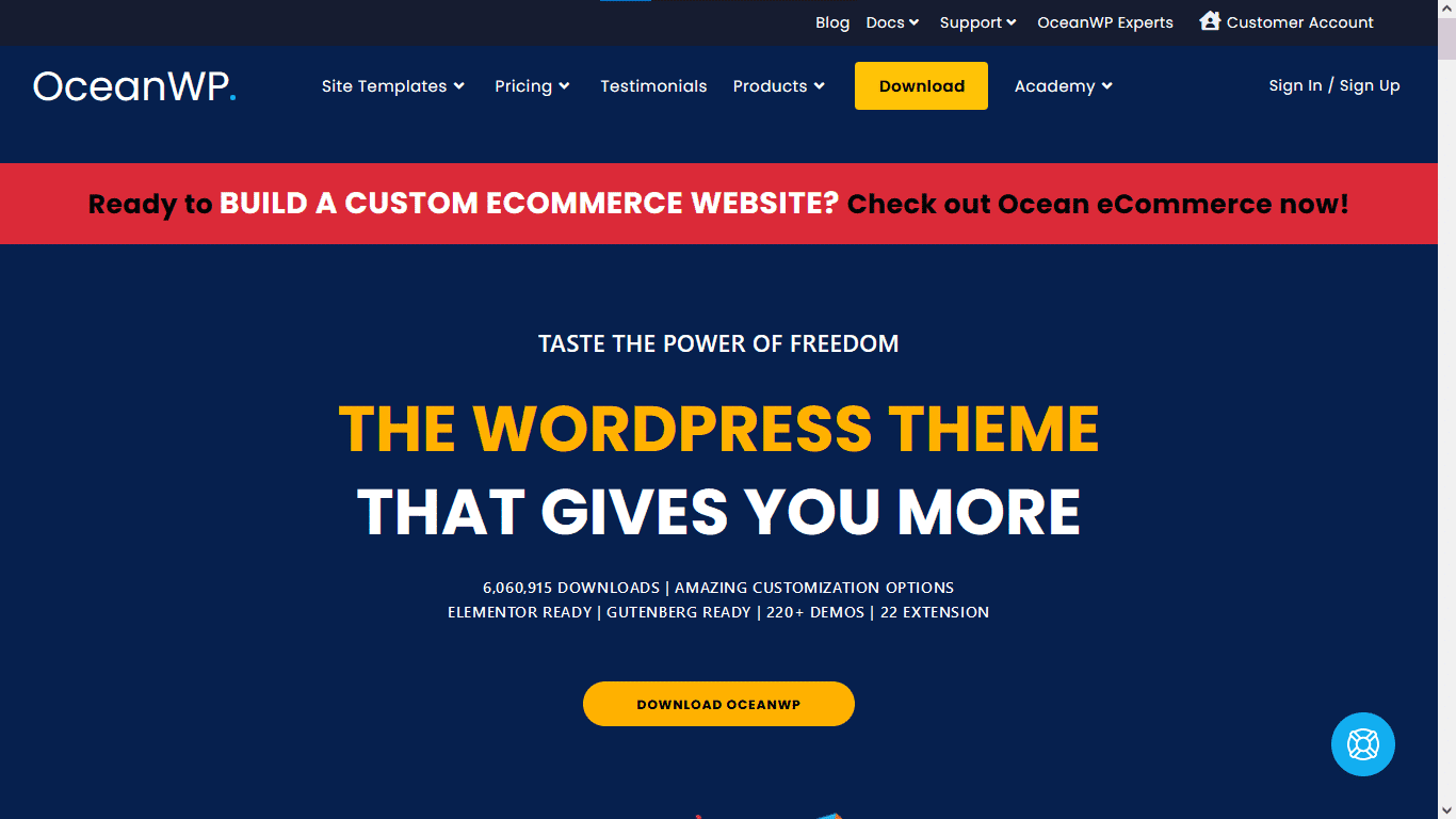 OceanWP is one of the best themes for WooCommerce which is available on the WordPress repository for free. But for a better website-building experience, you must upgrade to the Pro version, which starts at $43/year.
