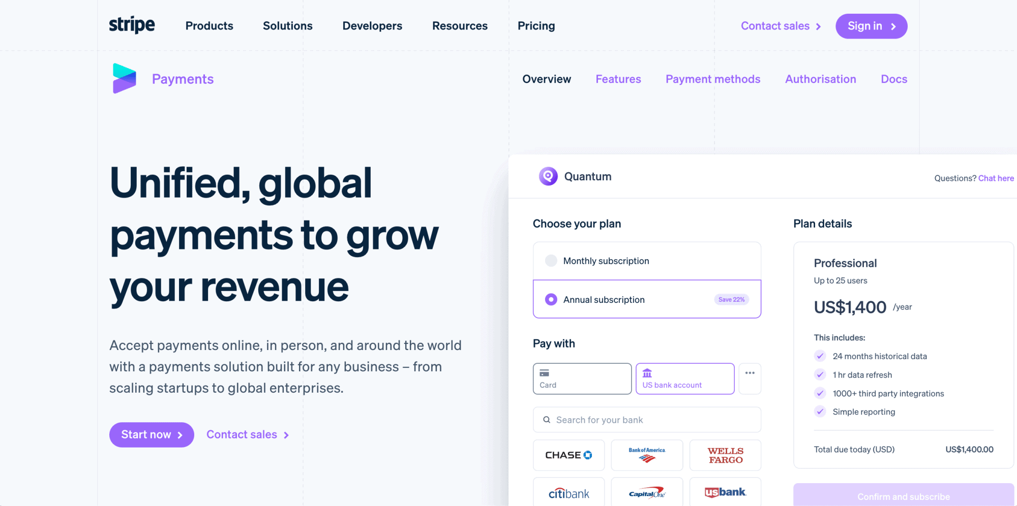 Stripe’s extensive support for various payment methods ensures customers have the flexibility to pay how they prefer, enhancing the checkout experience.