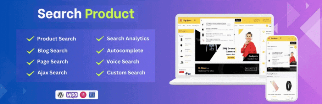 - Search WooCommerce Products, Blog Posts, and Custom Post Types (CPT).