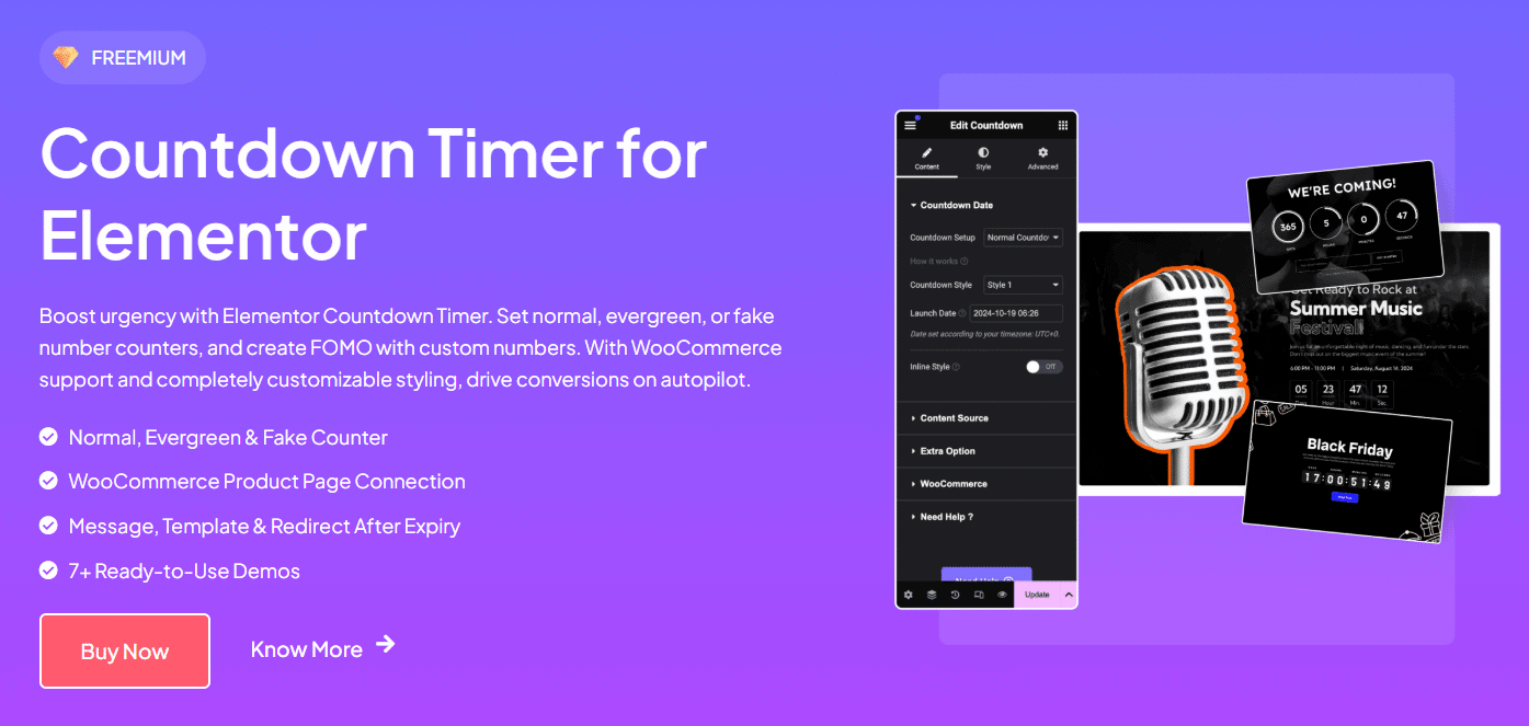 - Multi-Purpose Timers: One plugin can help you create timers for your different needs, be it limited-time discounts, product reveals, pre-order deadlines, site maintenance breaks, and more.