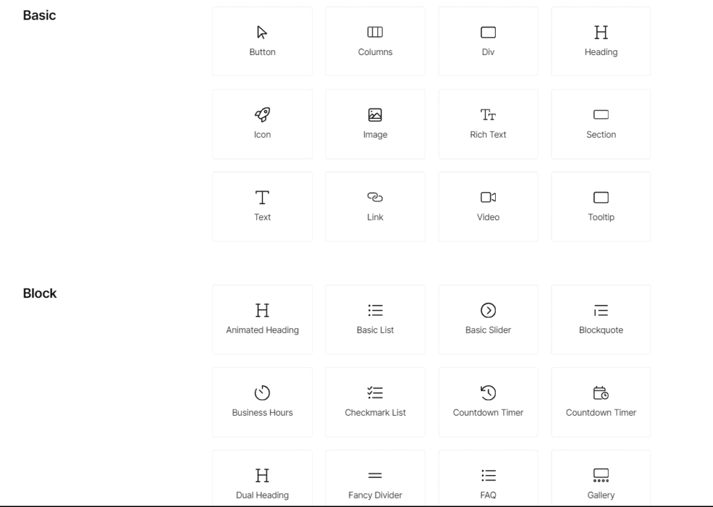In addition, Breakdance also has a great collection of design elements (or widgets) that allow you to enhance the look, feel, and functions of your website.