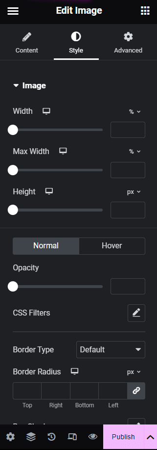 You can add various widgets based on the feature you need. Further, when you click on an added element in the editor, this side panel will show the basic element settings such as content, style, and advanced.