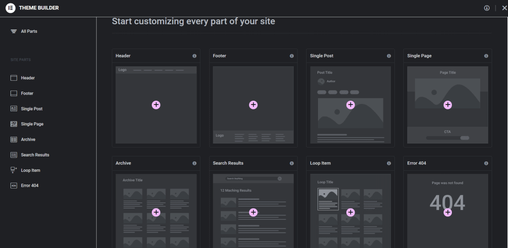 Elementor also has a theme builder that lets you design complete WordPress theme templates, including header, footers, archive templates, and single templates.