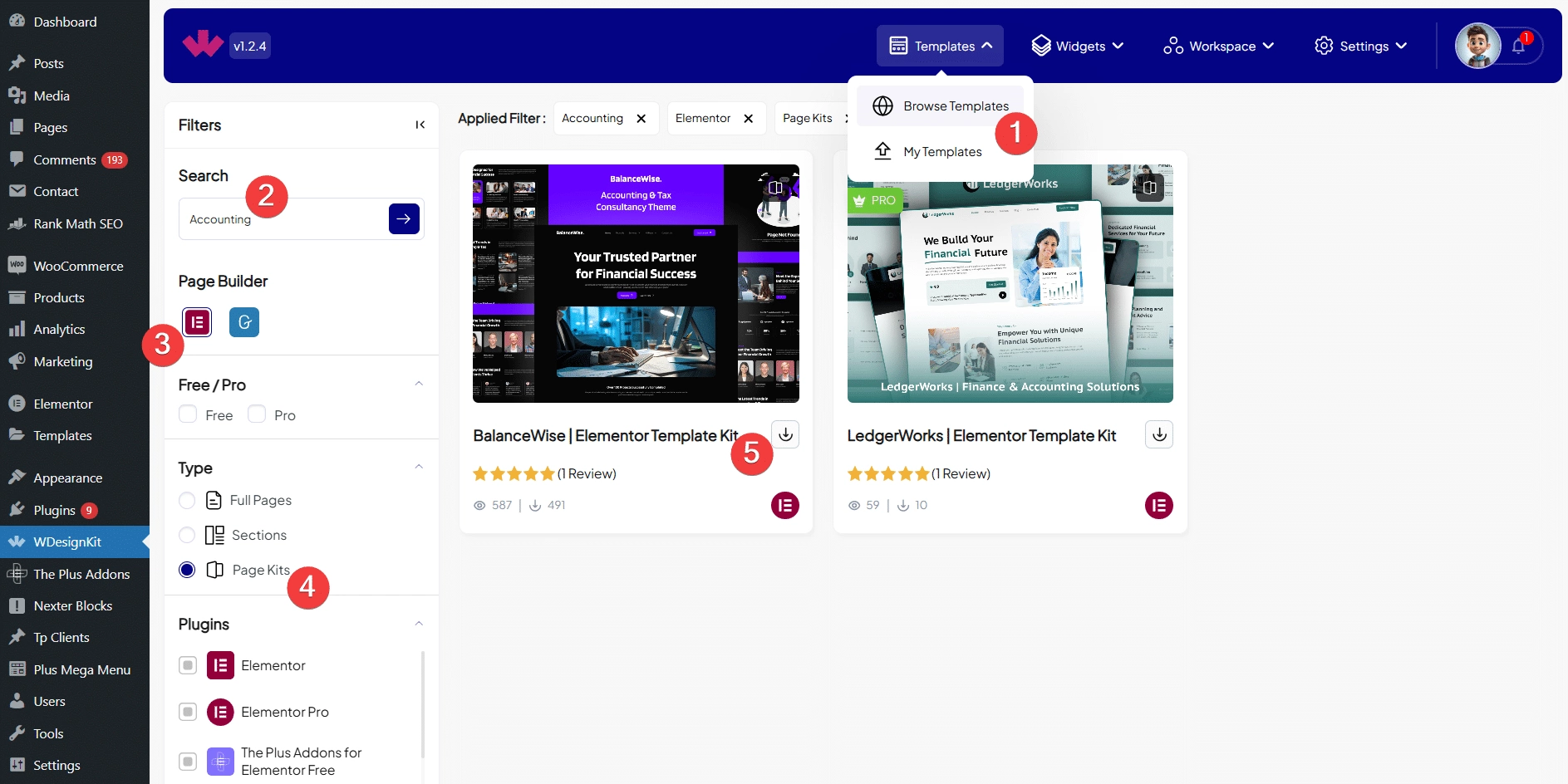 Let’s grab your perfect template in just a few clicks. Jump into your WordPress Dashboard > WDesignKit > Browse Templates section.