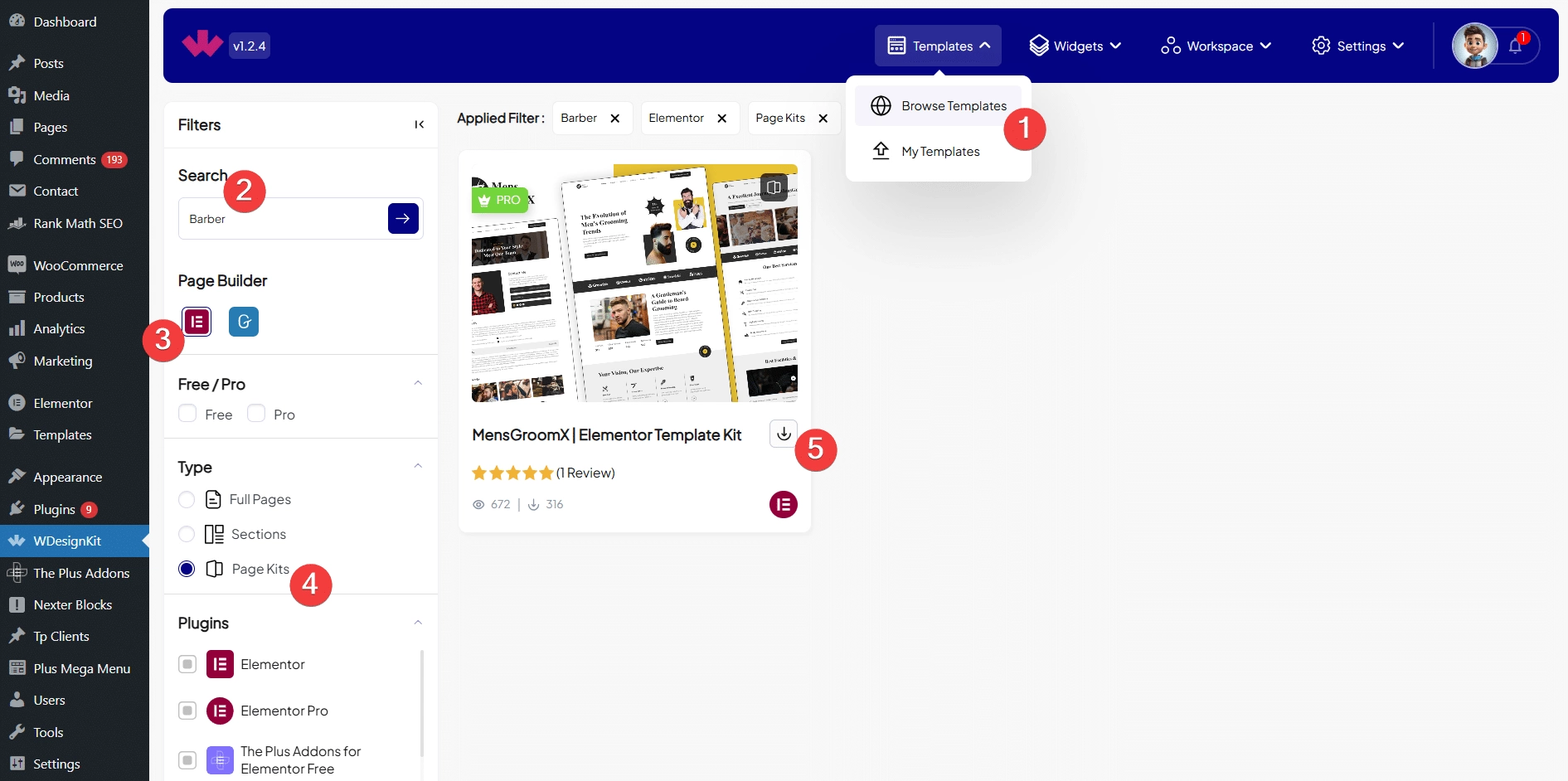 Let’s grab your perfect template in just a few clicks. Jump into your WordPress Dashboard > WDesignKit > Browse Templates section.