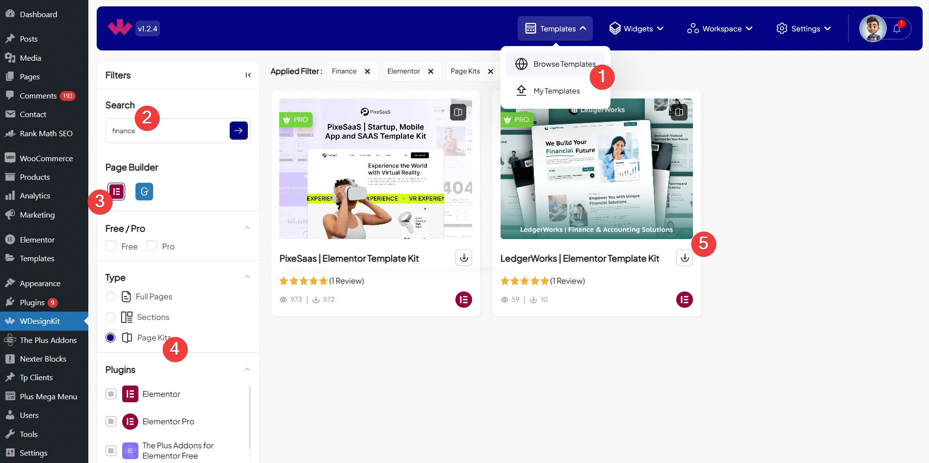 Let’s grab your perfect template in just a few clicks. Jump into your WordPress Dashboard > WDesignKit > Browse Templates section.