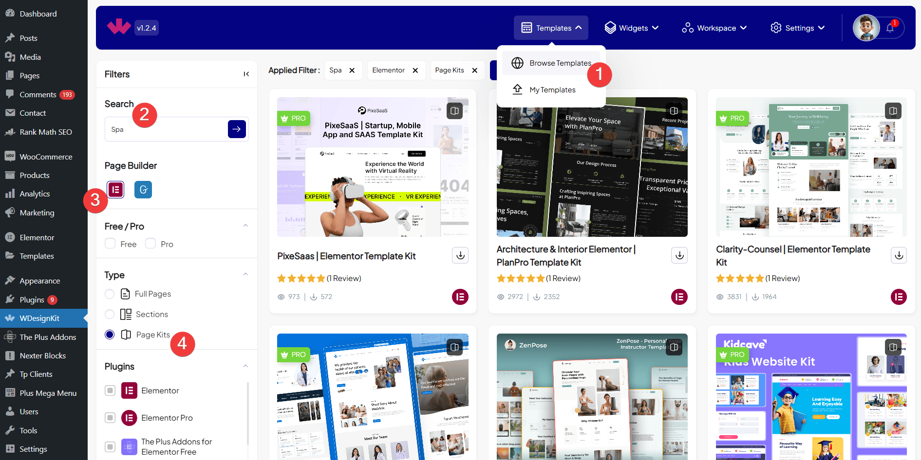 Let’s grab your perfect template in just a few clicks. Jump into your WordPress Dashboard > WDesignKit > Browse Templates section.