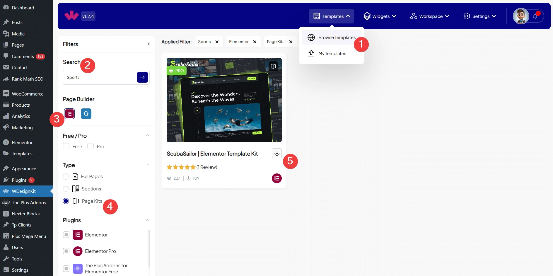 Let’s grab your perfect template in just a few clicks. Jump into your WordPress Dashboard > WDesignKit > Browse Templates section.