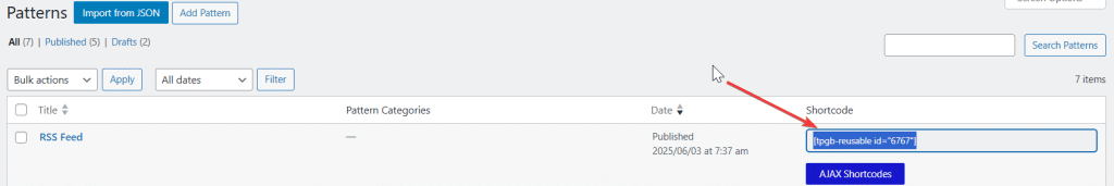 Step 3: Copy the Pattern Shortcode