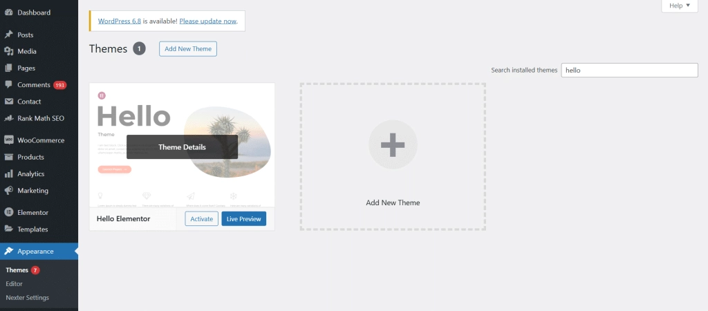 In this case, you can switch to a default WordPress theme, such as Elementor’s Hello theme, to figure out if the theme was the problem.
