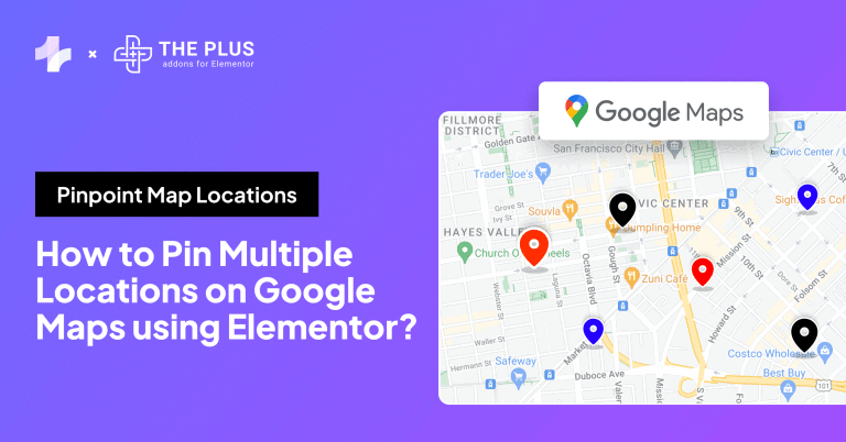 Elementor doesn’t support multiple location markers by default. To display multiple pins, you’ll need a plugin like The Plus Addons, which adds advanced mapping widgets that give you full control over your business pin placement and design inside your Elementor editor.