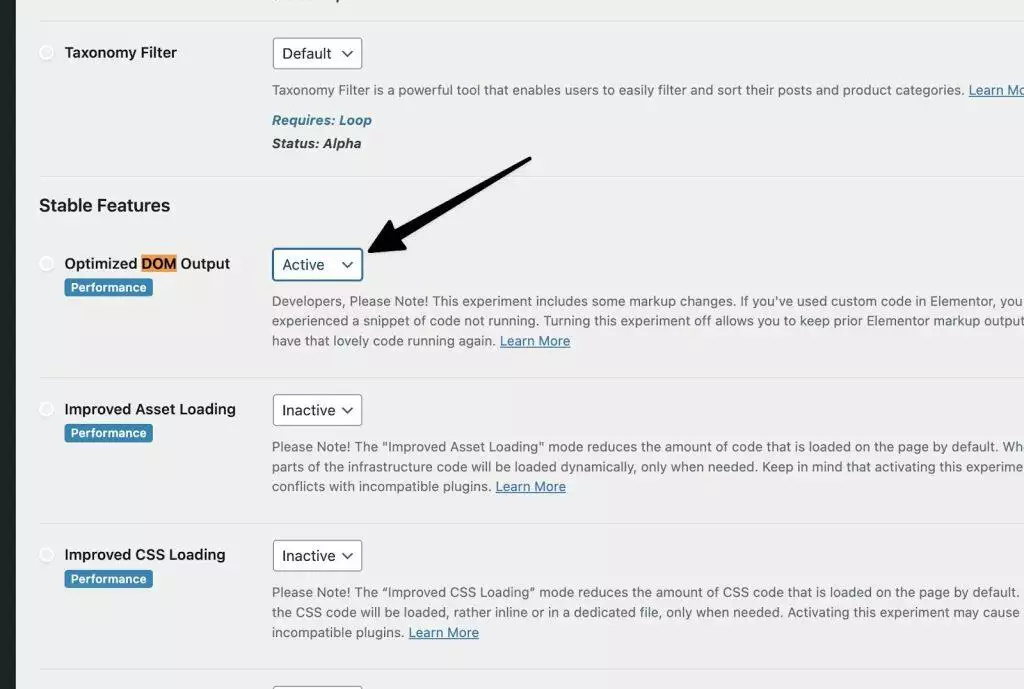 Moreover, Elementor has built-in features that can assist you in reducing the DOM size, such as the Optimized DOM Output experiment. This feature removes unnecessary HTML wrappers and reduces the DOM size, improving website performance.