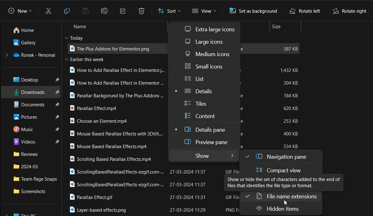 So now as you can see all the files have their file format besides their name, in this instance, the file name is The Plus Addons for Elementor.png.