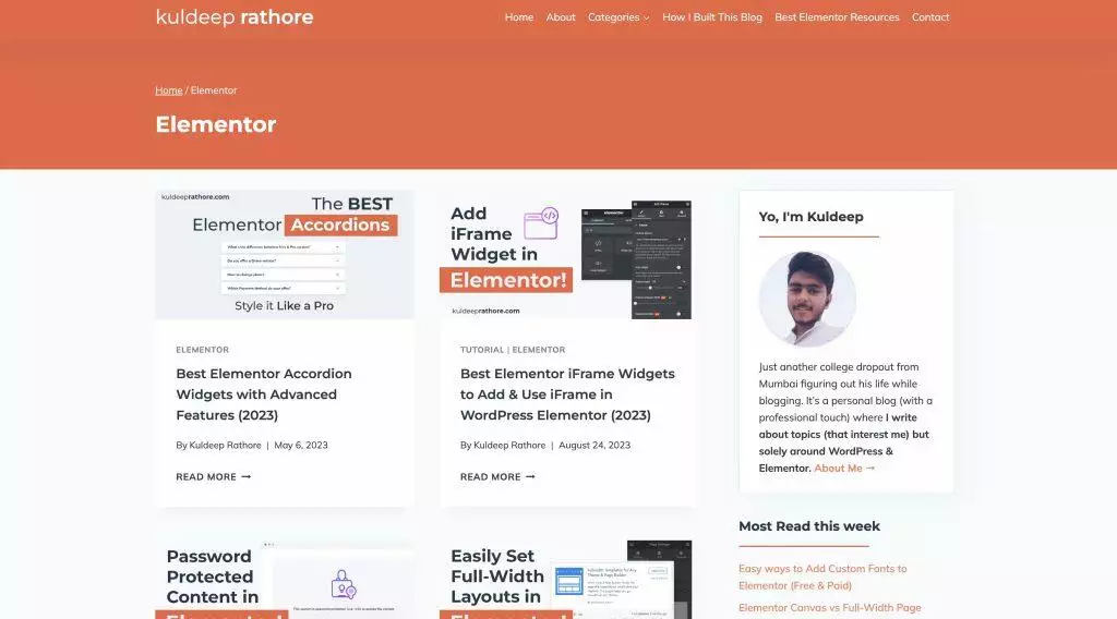 Another great site to learn best tips on Elementor is Kuldeep Rathore’s blog. He shares some of the unique content on Elementor.