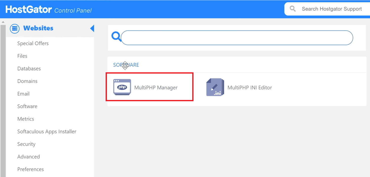 - On cPanel, navigate to the software section and open MultiPHP Manager