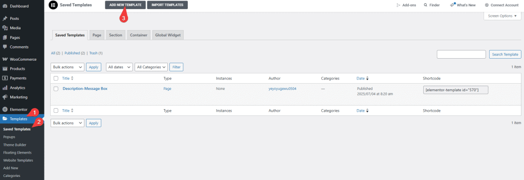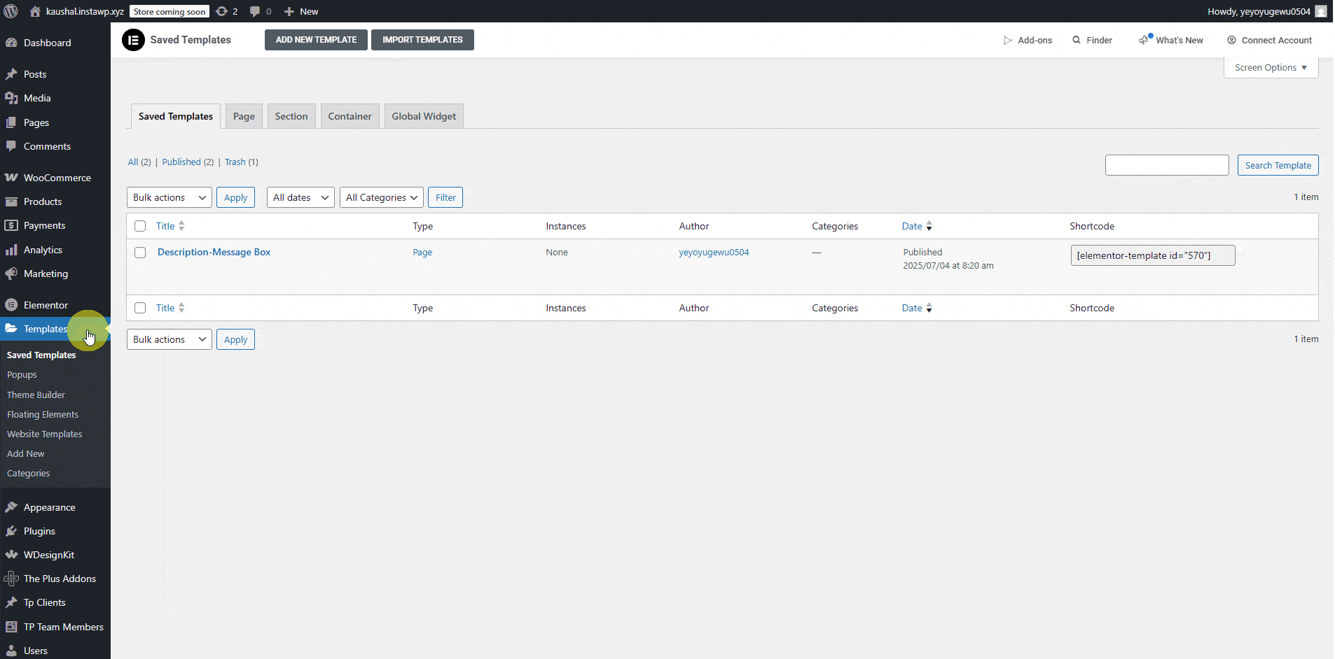 2. Now you have to use the Elementor template using a Shortcode. You’ll get the template shortcode if you are using Elementor Pro, or you can use the Anywhere Elementor plugin to get the template shortcode for free. Copy the shortcode of the template you want to use.