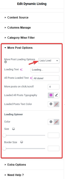 3. Then go to the More Post Options tab and select Lazy Load from the More Post Loading Options dropdown.