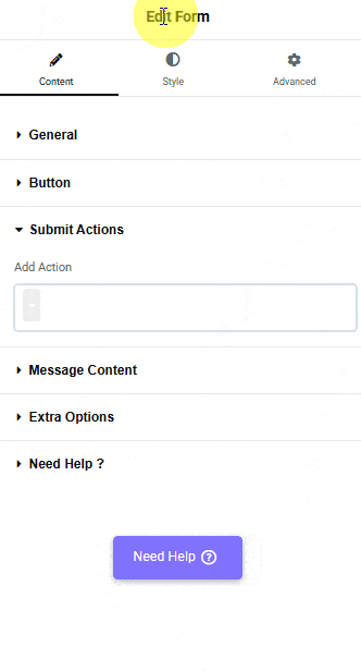 2. Then select the main Form Widget and go to the Submit Actions tab, and select ConvertKit from the Add Action dropdown.