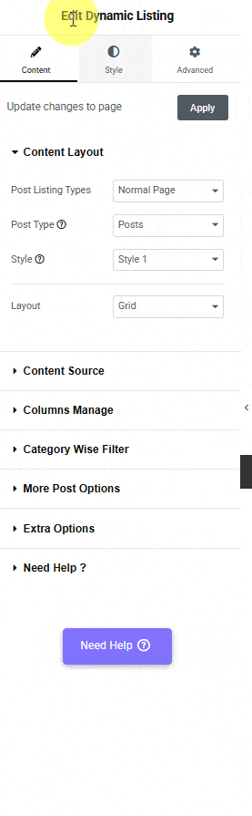 2. Once done, add the Dynamic Listing widget to the page.