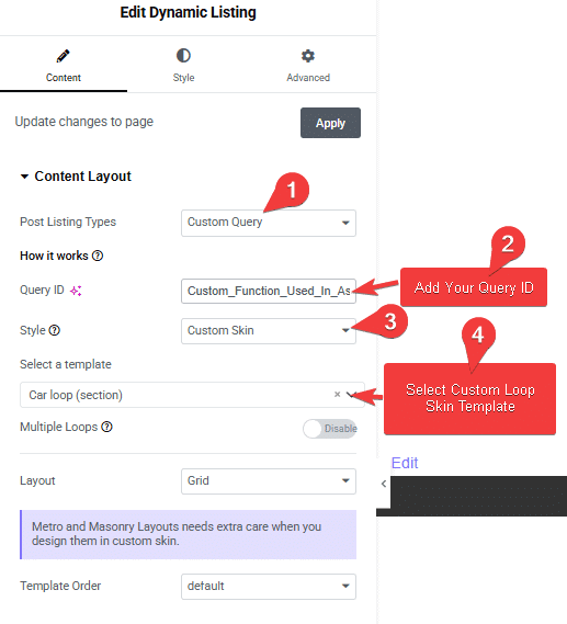 3. Then select Custom Query from the Post Listing Types dropdown.