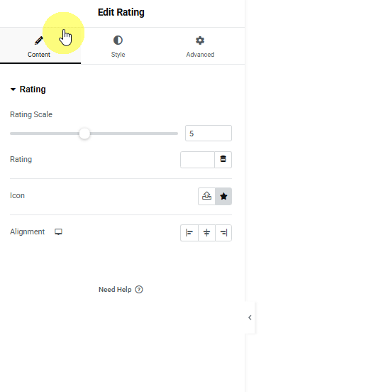 6. Now we’ll add a Star Rating. For this, we’ll add the Elementor Rating widget in the last column.