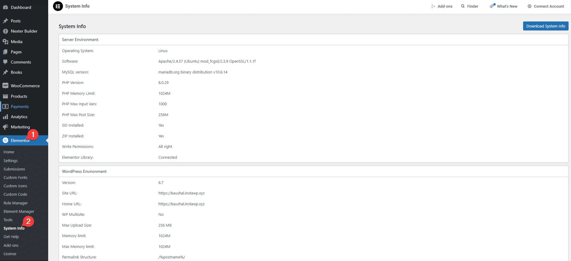 Once done, you can come back to Elementor > System Info to confirm the update.