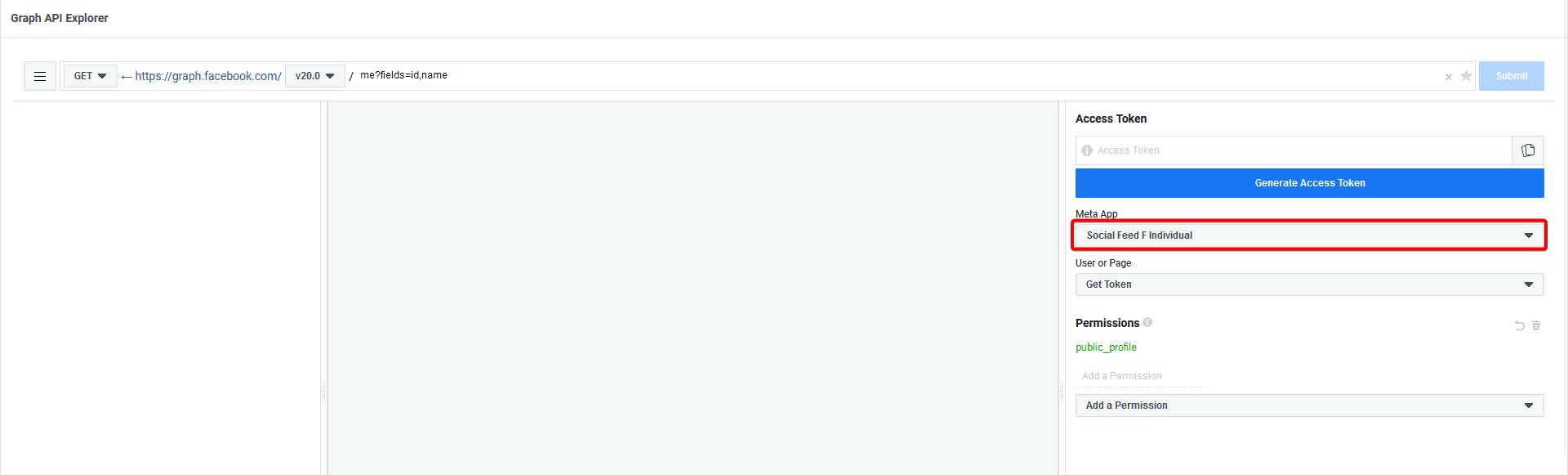 11. Then from the User or Page dropdown select Get Page Access Token. A popup will open, continue with your Facebook account, then select your Facebook page and follow the steps to complete the process. Now you’ll see two permissions added in the Permissions tab.