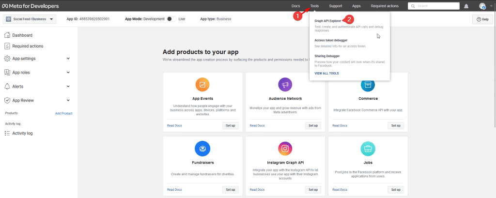 9. On the next page, from the top menu go to Tools > Graph API Explorer.