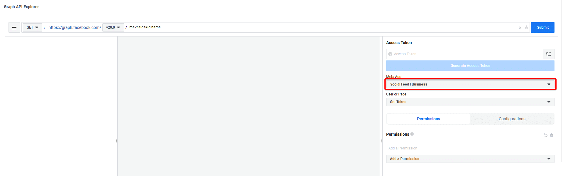 11. Then from the User or Page dropdown select Get Page Access Token. A popup will open, continue with your Facebook account, then select your Facebook page and follow the steps to complete the process. Now you’ll see two permissions added in the Permissions tab.