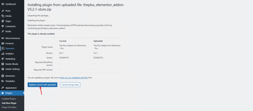 5. On the next page, it will show the current and uploaded version comparison click on the Replace current with uploaded button.
