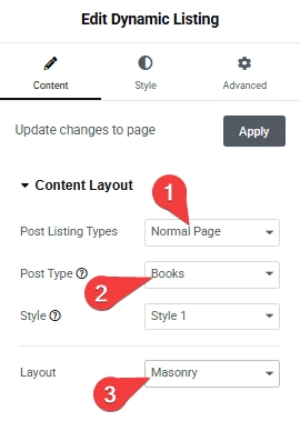 Note: Following this process, you can also show blog posts and products in a masonry layout, but we recommend using our dedicated Blog Listing and Product Listing widgets for more options.