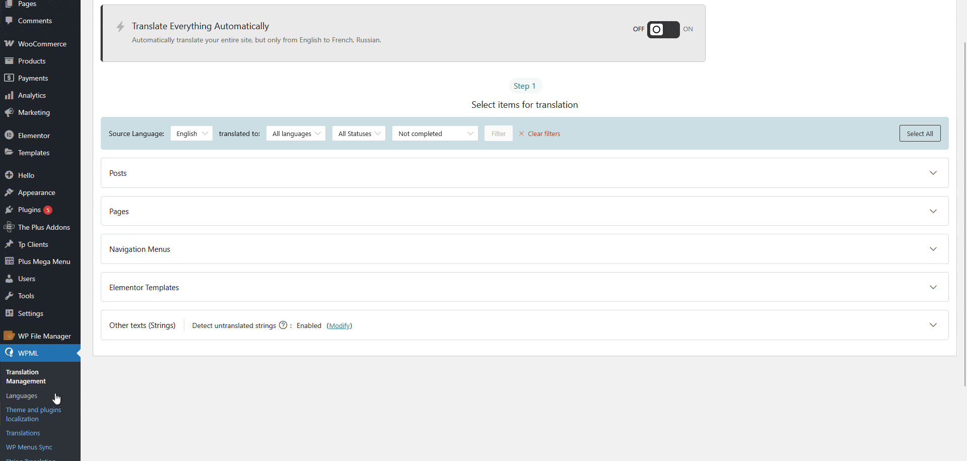 Let’s see how you can translate your The Plus Addons for Elementor content with WPML.