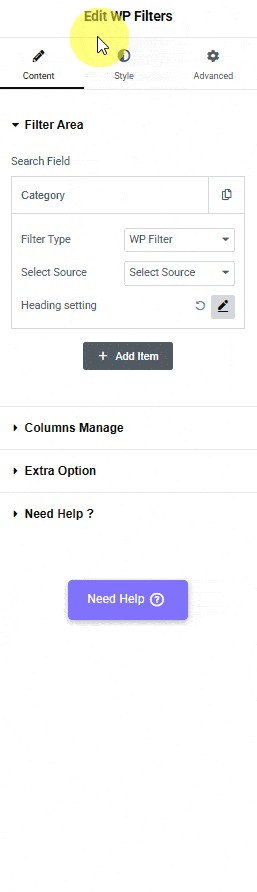 You’ll also find the same Heading setting option available in the WP Filter option.