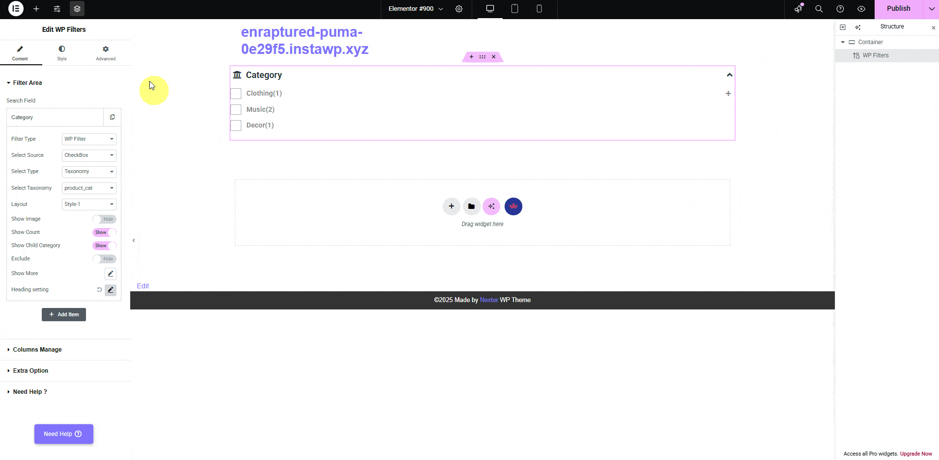 Note: WP Search Filters widget only works with Dynamic Listing and Woo Product Listing widgets.