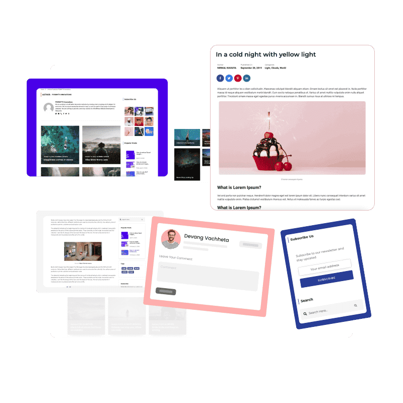 Don’t depend on your theme styles. Craft your own Blog design with our Comment, Content, Featured image, Search widgets etc.