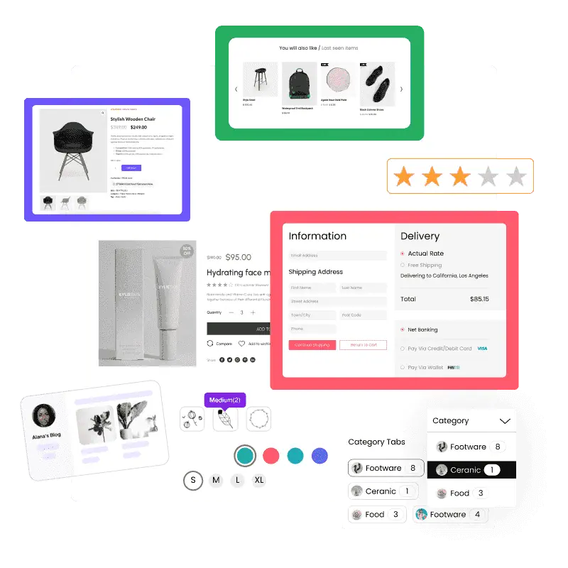 Make your sale generating site with extensive collection of My Account, Cart, Filters, Checkout, Tabs, Swathes and much more