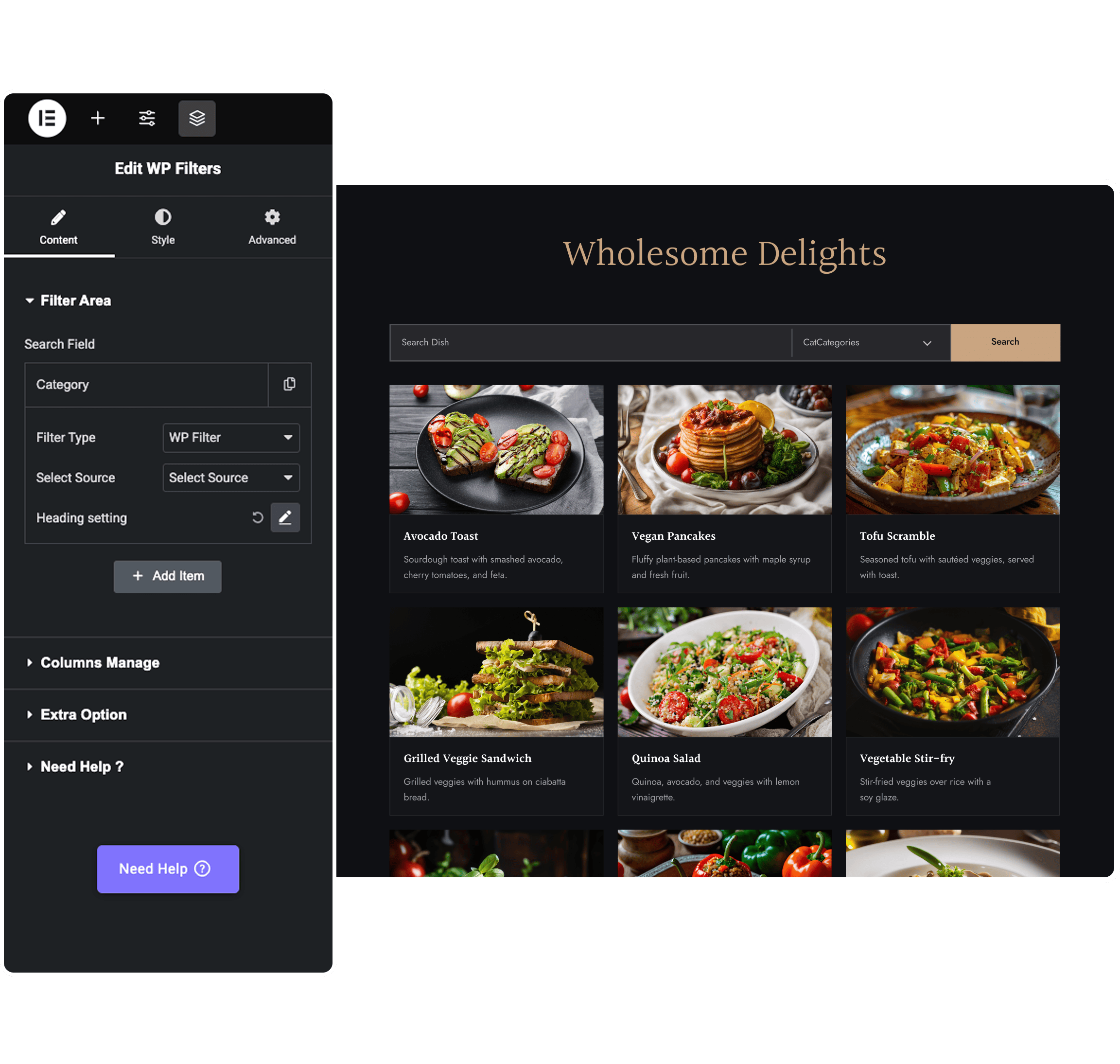 Design your whole filters part directly in elementor editor without any hassle from WordPress.
