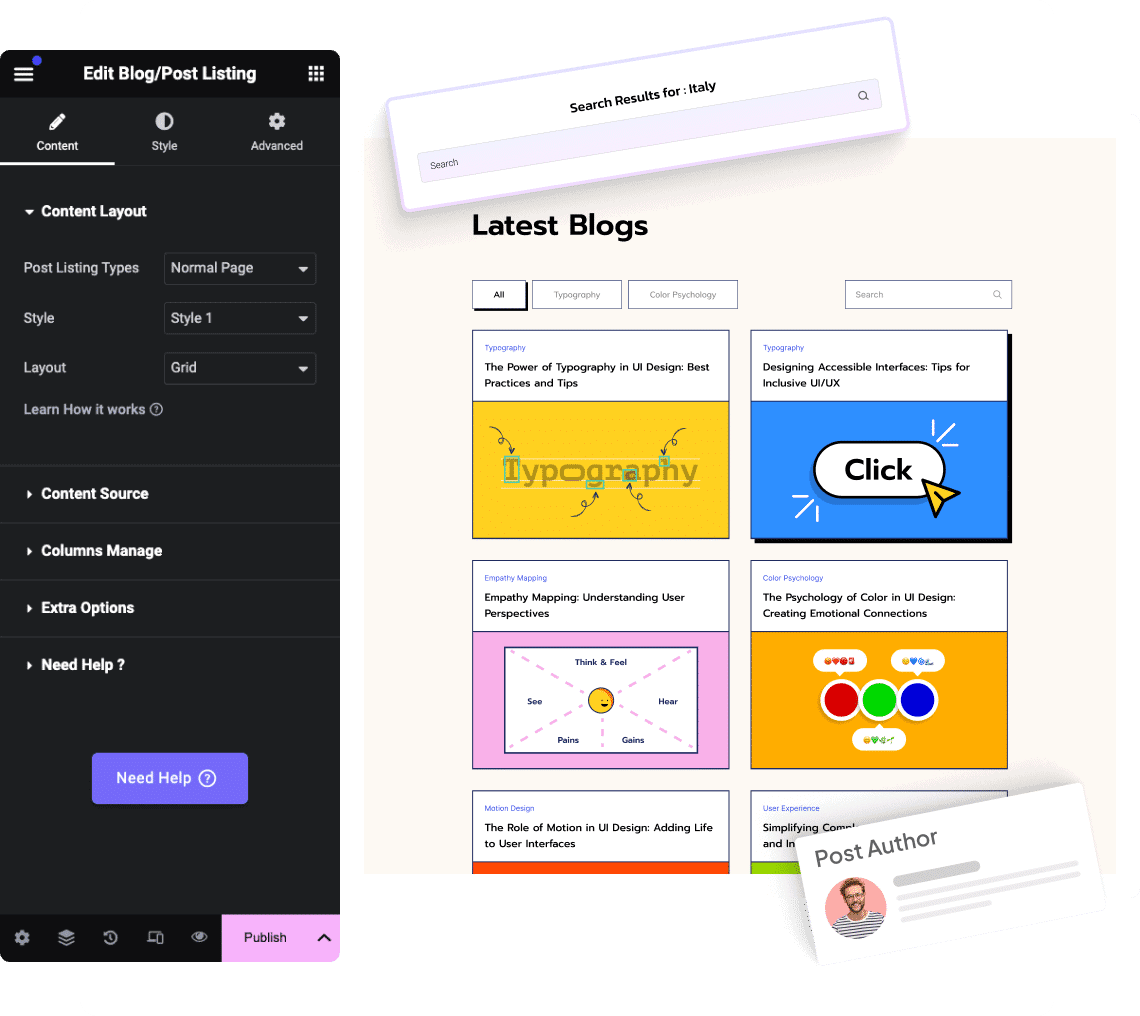 Core Widgets of our Blog Builder for Elementor which helps you customize all your blog pages with Theme Builder.