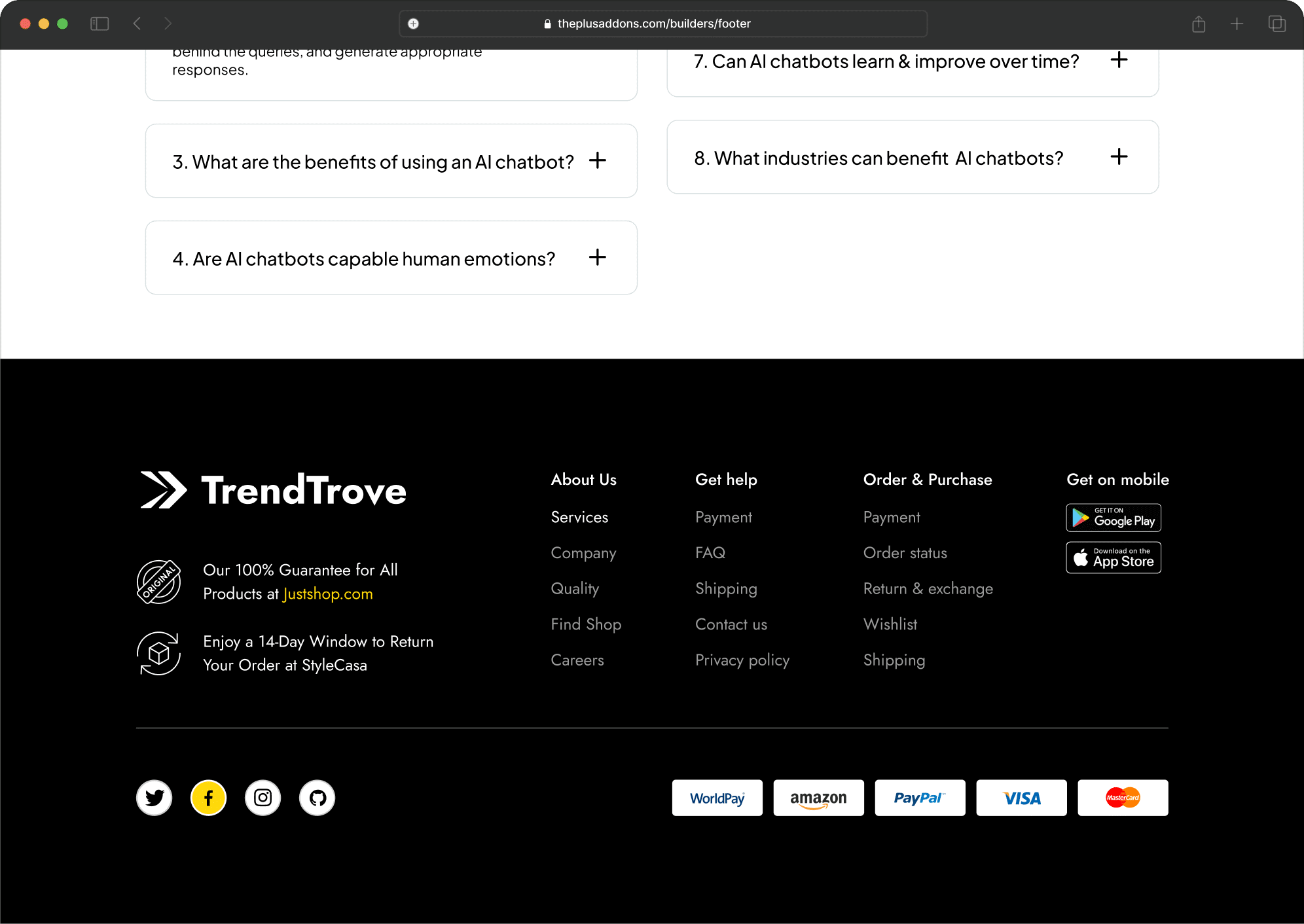 Got your any badges or app download link? Use our TP Button to add interactive buttons to your footer.
