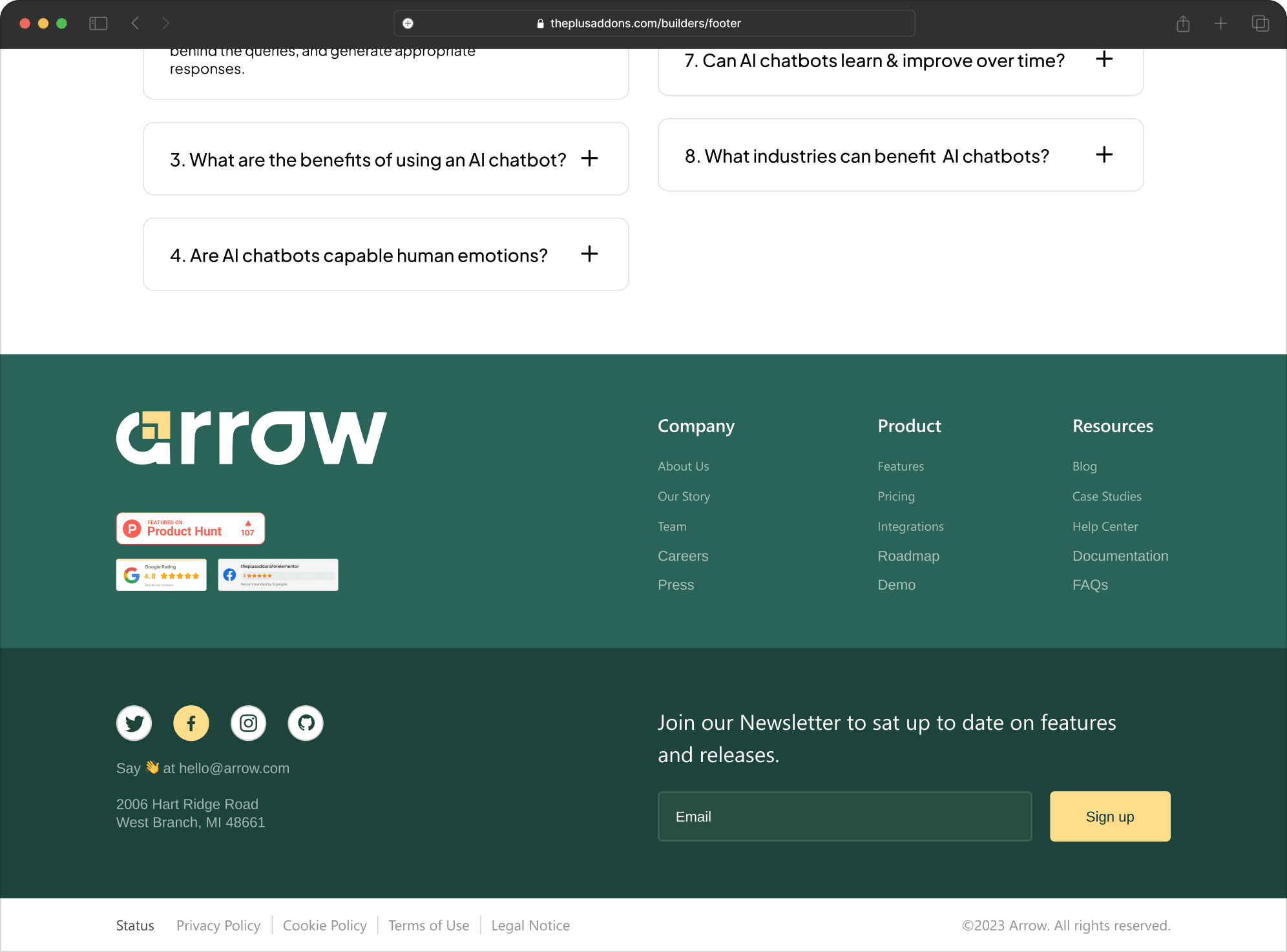 Collect emails from the footer by adding the Mailchimp email newsletter form for lead generation.
