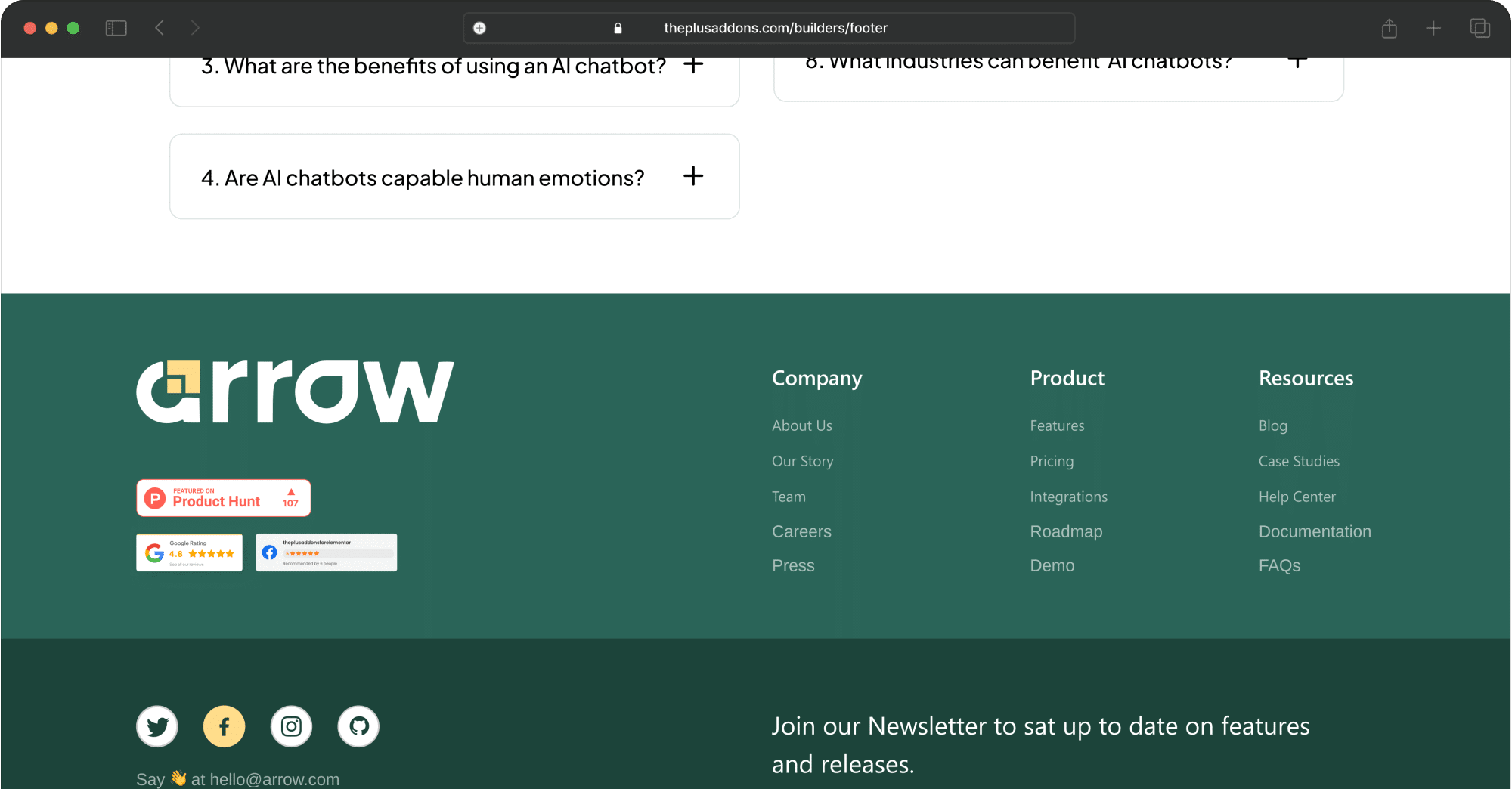 Turn your ordinary website footer into an engaging navigation hub and better SEO! Our Elementor Footer Builder is packed with rich content and interactive features. From hover color change to social icons, feeds, reviews, copyright text, review badges, email forms, and more.