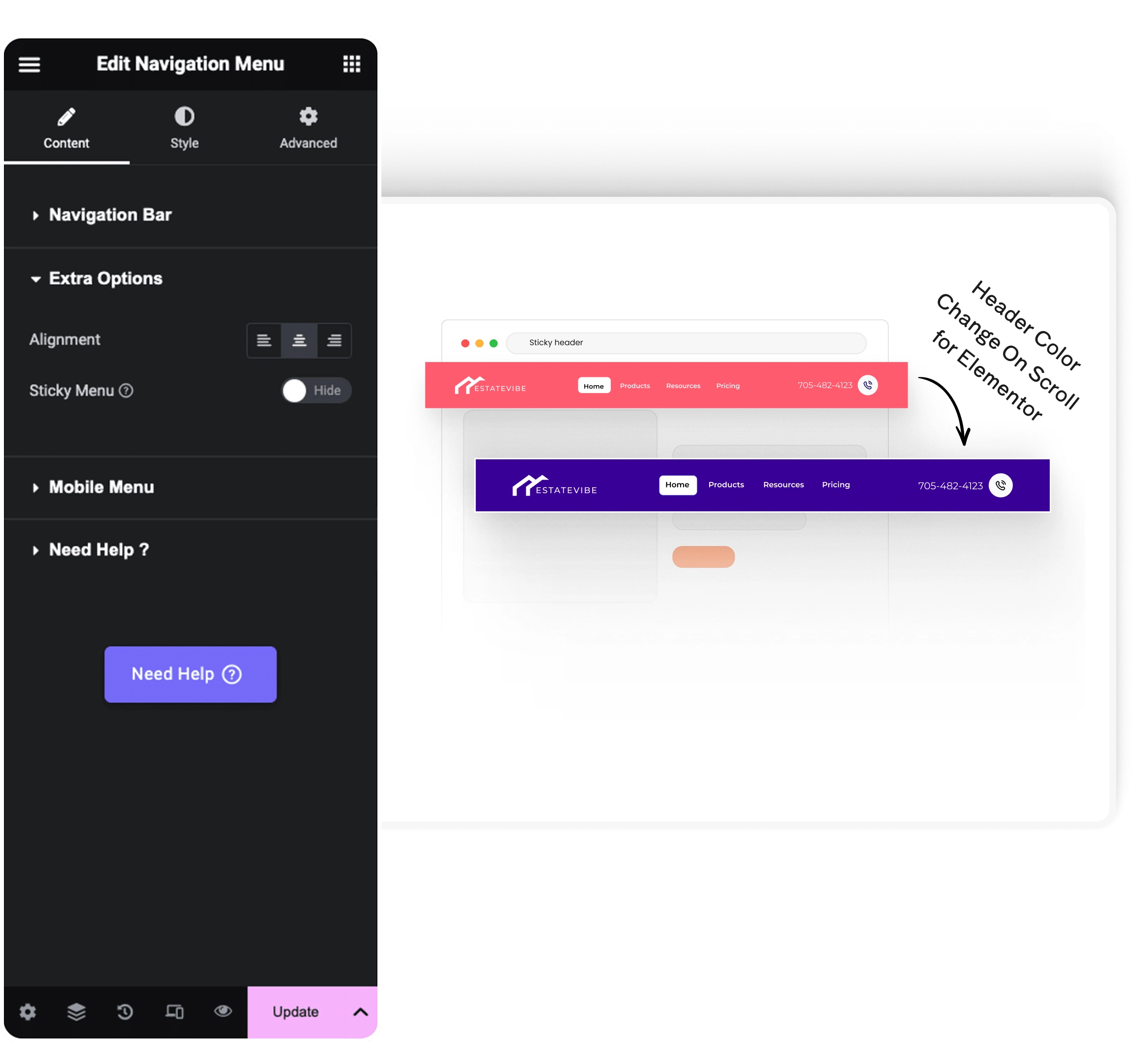 Header On Scroll Color Change for Elementor